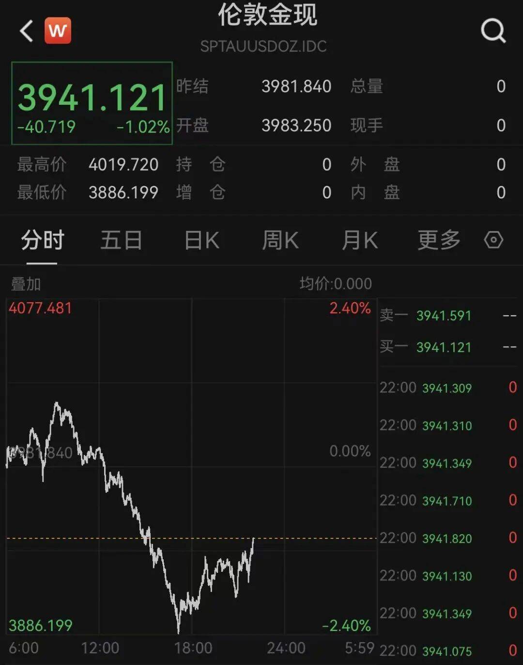 黄金今日继续下跌,截至发稿,伦敦金跌超1%,盘中一度跌破3900美元,COMEX黄金更是暴跌近2%,最低跌至3901美元附近。