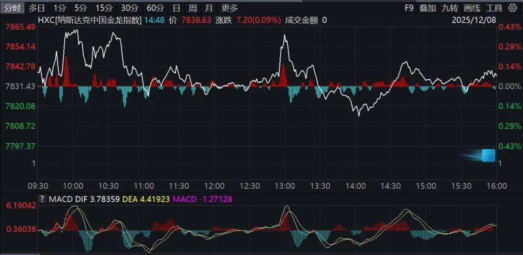 纳斯达克中国金龙指数收涨0.08%,热门中概股涨跌不一,百度、名创优品涨超3%,小鹏汽车、新东方涨超2%,网易跌超2%。
