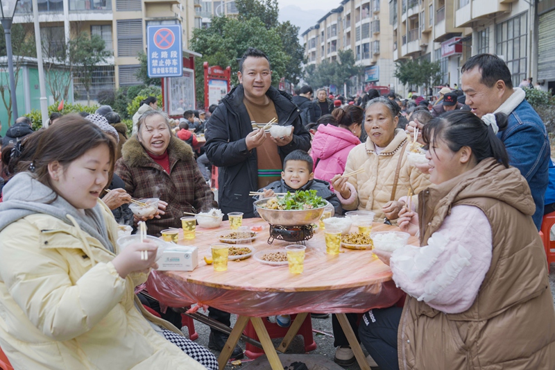 活动规模逐年扩大,内容也愈发丰富。今年团圆宴前的年会上,“希望小课堂”的孩子们用小品《新家暖阳》,深情讲述搬出大山、拥抱新生活的故事。社区现场还为“优秀网格员”“优秀志愿者”“最美家庭”颁奖,接过荣誉证书和崭新棉被的殷水成笑意盈盈。从被吸纳为居民组长,到进入社区监委会,原本不甚理解社区工作的他把那股执着认真的劲头,全都用在了服务邻里上。今年,他还主动牵头组织皂角坪安置点的邻居组建拔河队参加比赛。殷水成的转变,正是众多搬迁群众从“住下来”到“安下心”,再到主动“当好家”的生动缩影。