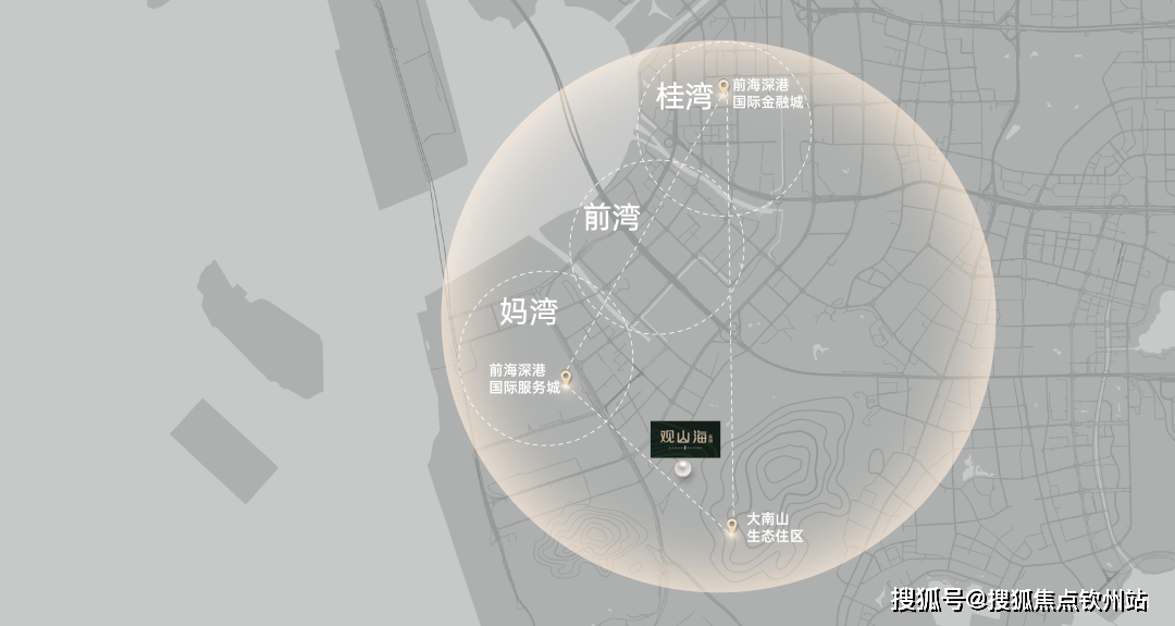 观山海家园位于前海妈湾,坐落于“黄金三角”中,享受着前海三湾繁华配套,在深港桂湾金融城和妈湾深港国际服务城两大前海核心引擎辐射中,与前海核心配套「2.9 k㎡妈湾理想城」不过数百米。
