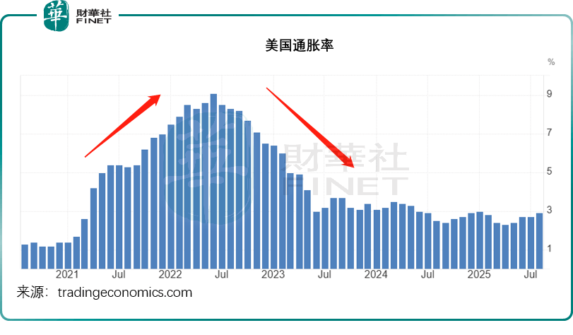 2021年10月起,美国的通胀率飙升,见下图。美国通胀率从2021年2月时的1.7%,飙升至6.2%。
